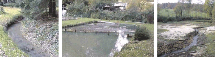Eine aus acht Teichen von insgesamt ca. 2000 qm Wasserfläche bestehende Nebenerwerbs-Forellenteichanlage wird mit Wasser aus einem darüber liegenden Dorfteich gespeist. Der Pächter bewirtschaftet die Anlage seit über 30 Jahren, mußte jedoch altersbedingt mehrere Teiche separat verpachten.Im oberhalb gelegenen Dorfteich befinden sich mehrere Quellen. Das ablaufende Wasser gelangt über ein separates Verteilerbauwerk in einen Umflutgraben, von dem es wiederum einzeln auf alle acht Teiche verteilt werden kann.
